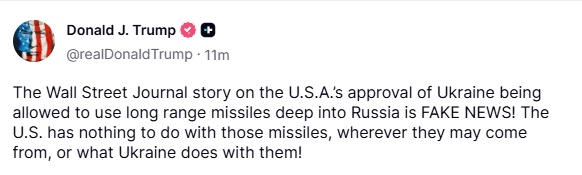 特朗普称,无论这些导弹来自哪里,也无论乌克兰如何使用它们,美国都与它们无关。